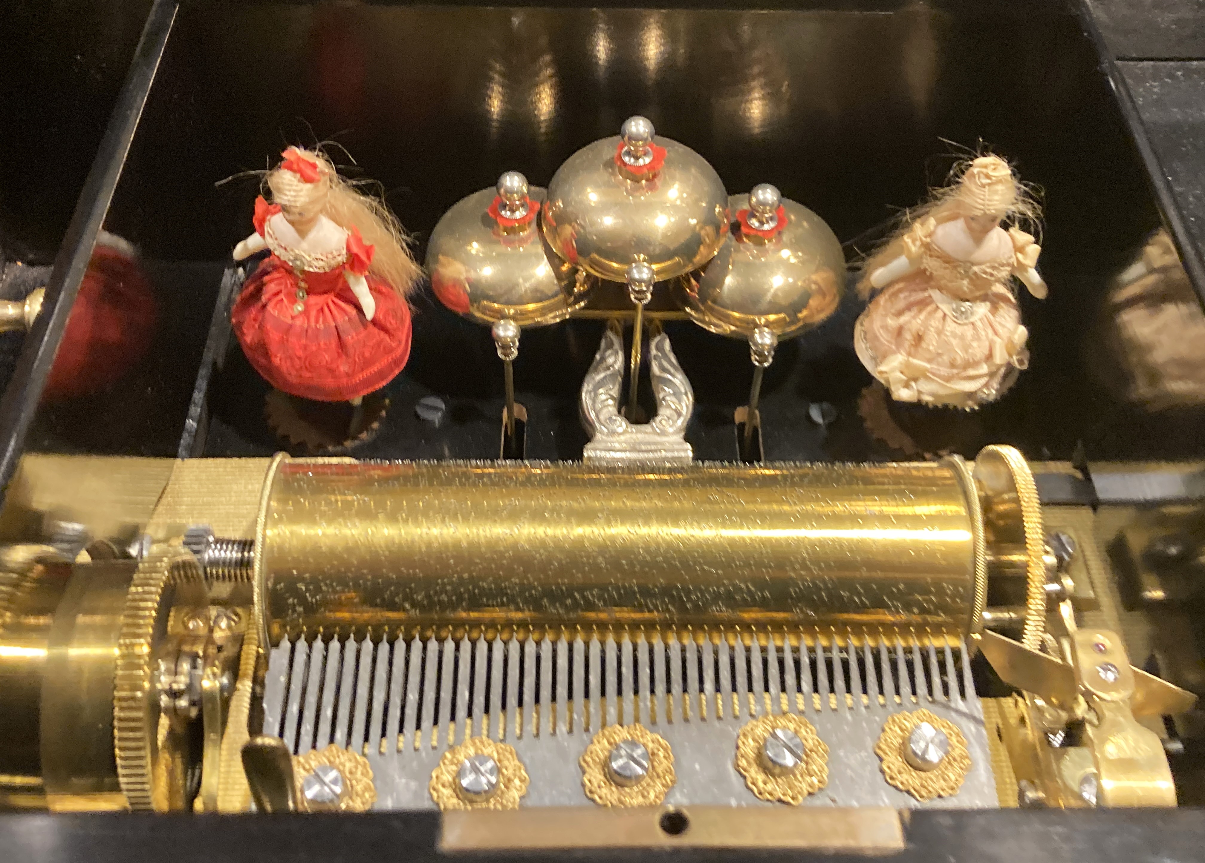 Dancing Dolls & Bells Cylinder Music Box